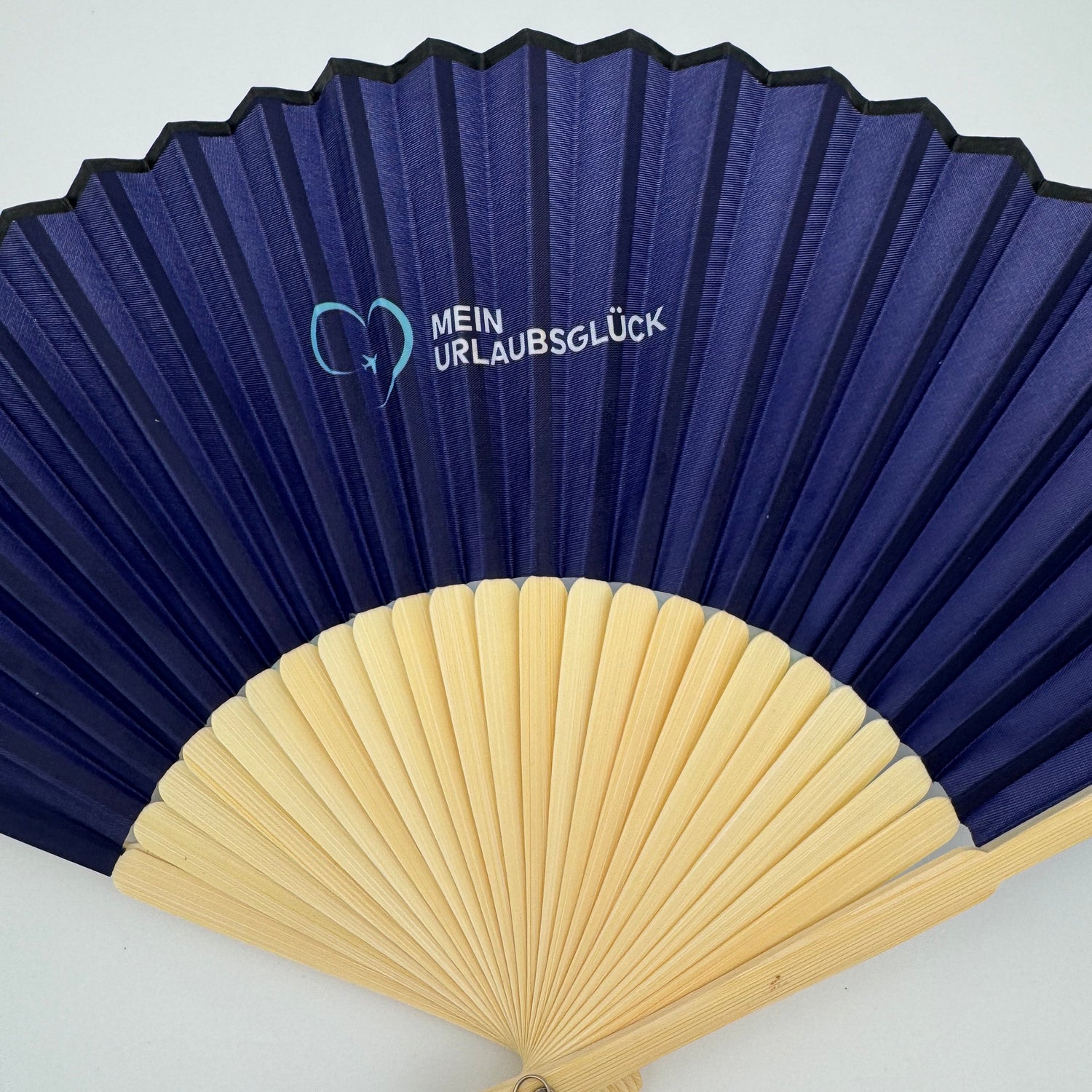 Diese stilvollen Fächer mit Mein Urlaubsglück-Logo sind nicht nur ein echter Hingucker – sie sind auch das perfekte kleine Geschenk für deine Kunden.